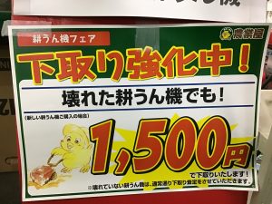 そんなお客様へ、使わなくなった耕運機を当店へお持ちいただければ、
