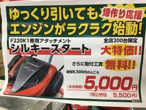 また、こまめF220専用アタッチメント「シルキースタート」がお買い得!
