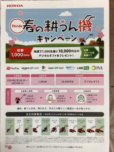 HONDAさんの「春の耕運機キャンペーン」に参加できる!