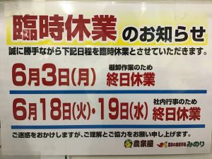 6月18日(火)・19日(水) 社内行事のため終日休業