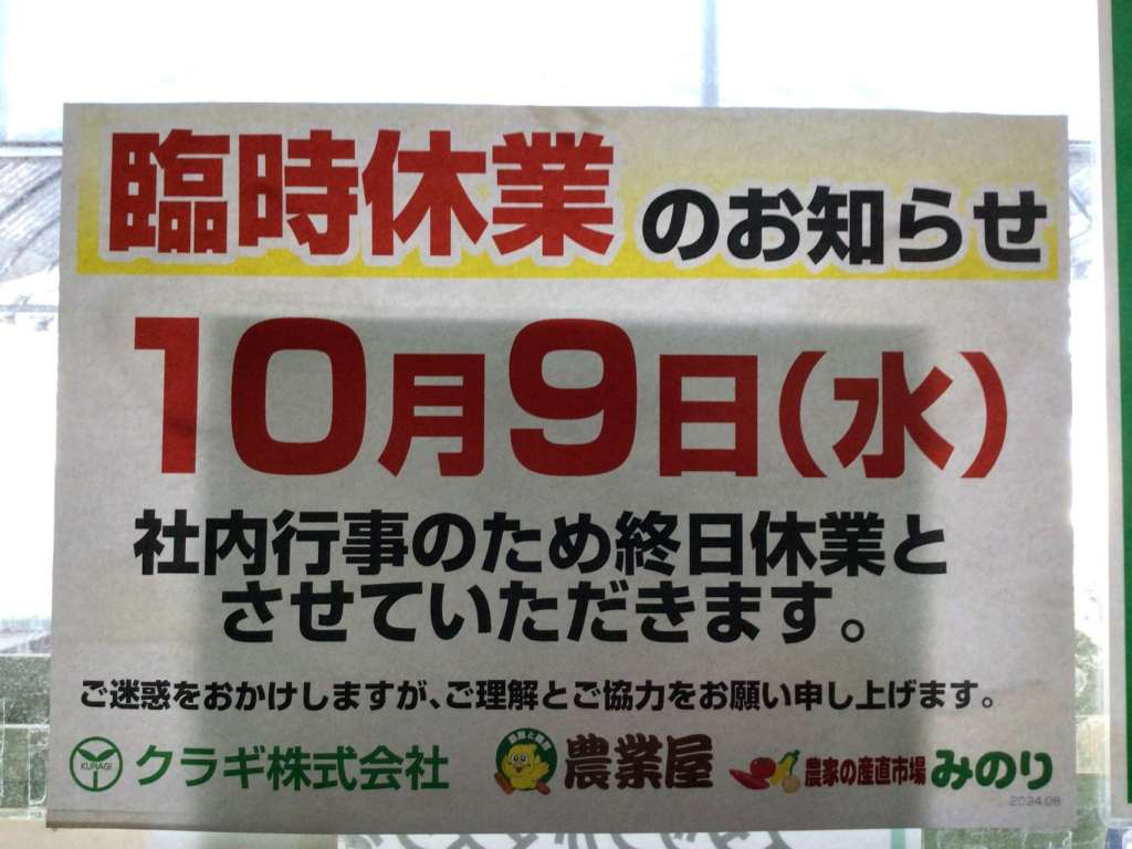 ご愛顧いただいているお客様へ、10月の臨時休業のお知らせです