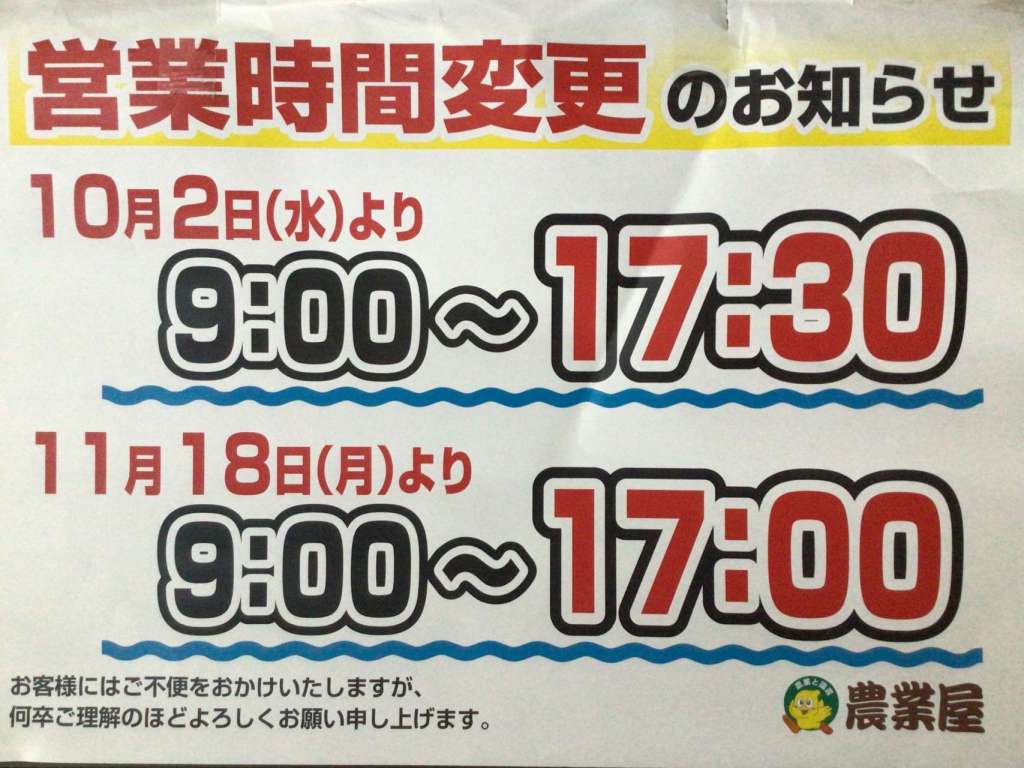 また、10月2日(水)、11月18日(月)より営業時間が以下の通り変更となります