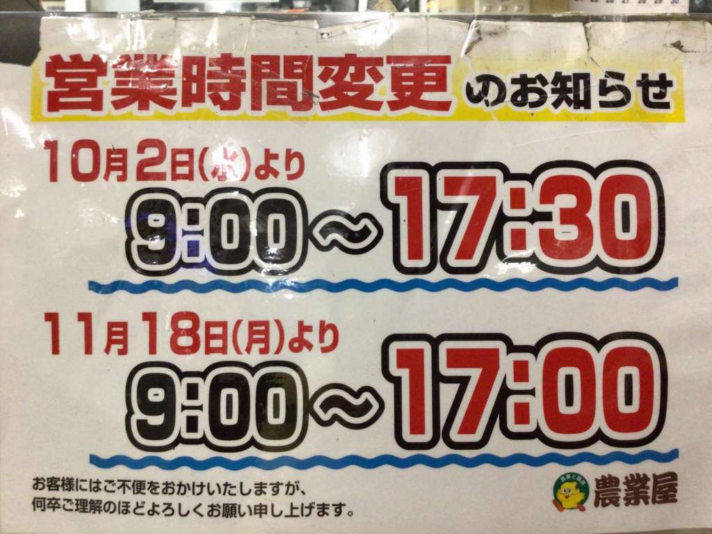 ご愛顧いただいているお客様に、営業時間変更のお知らせです