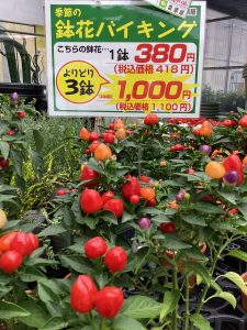 先日の、鉢花タイムセールには、たくさんのお客様にお買い得の鉢花を選んでいただけて、嬉しく思っております。